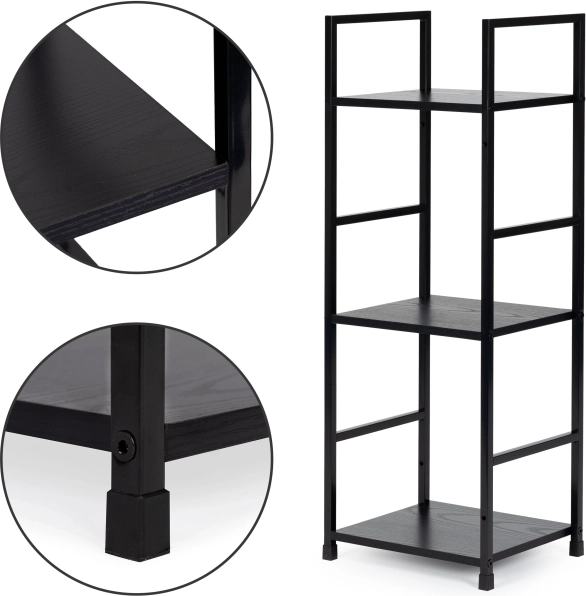 De plank biedt drie open niveaus voor het uitstallen van boeken, planten en accessoires, of voor het opbergen van handdoeken en cosmetica in de badkamer. De stabiliteit wordt ondersteund door beschermende doppen op de poten en de mogelijkheid tot wandbevestiging, wat vooral gezinnen met kinderen zullen waarderen.