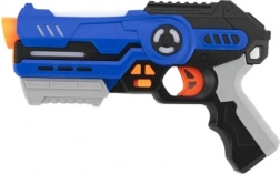Deze set van twee laserpistolen levert een geweldige actiegame voor twee spelers. Dankzij trefdetectie tot 40 meter geniet je van spannende duels in de tuin én in de woonkamer. Drie lichtindicatoren op het wapen tonen duidelijk de resterende levens, en licht- en geluidseffecten geven het spel extra sfeer.