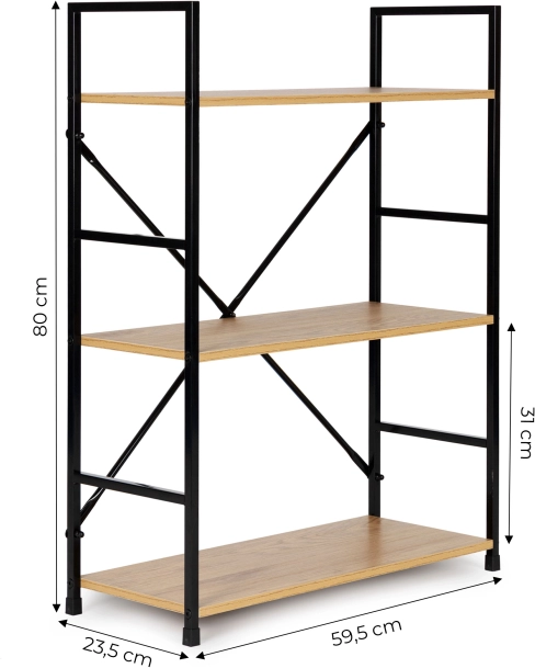 Stijlvolle en functionele plankenkast van ModernHome biedt drie ruime houten planken met een metalen frame, perfect passend in een modern interieur. Dankzij het eenvoudige en elegante ontwerp is hij ideaal voor zowel thuis als op kantoor.