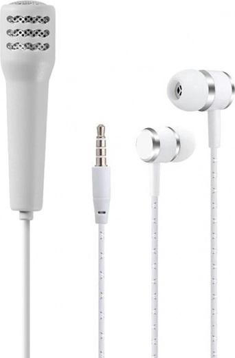 Miniatuur bedrade microfoon voor uw telefoon, die wordt aangesloten op de 3,5 mm mini‑jackpoort. Ideale hulp voor feestjes en karaoke. Extra kabel met uitgang voor stereokoptelefoon. Ruisonderdrukkingsfunctie voor helder geluid.