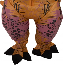Opblaasbaar T‑REX kostuum verandert elk feest in een show – het imposante silhouet, de wijd open bek en realistische patronen zorgen voor maximale aandacht en plezier. Met de meegeleverde blower (ventilator) blaast het kostuum snel op en blijft het in vorm, de rits aan de voorkant maakt aankleden makkelijk en het doorzichtige kijkvenster onder de bek geeft goed zicht op wat er om je heen gebeurt.
