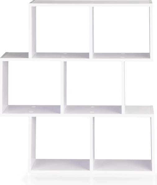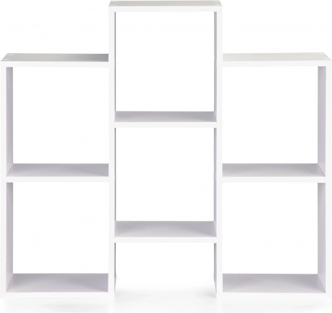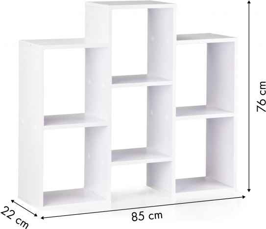 Creëer een overzichtelijke en esthetische opbergruimte voor boeken, tijdschriften en decoraties. Deze witte boekenkast met open planken valt op door strakke lijnen en tijdloze geometrie, passend bij moderne interieurs. Dankzij de draaibare constructie kunt u het rek aan de ruimte aanpassen en de oriëntatie naar wens wijzigen.