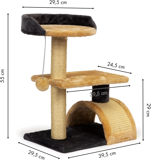 Op het bovenste deel van de boom is er een uitkijkplatform, dat de favoriete plek van uw kat zal worden dankzij de comfortabele pluche bekleding. Hangende speeltjes garanderen uren speelplezier en helpen om katten actief en gelukkig te houden.
