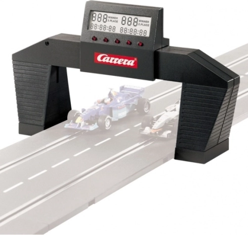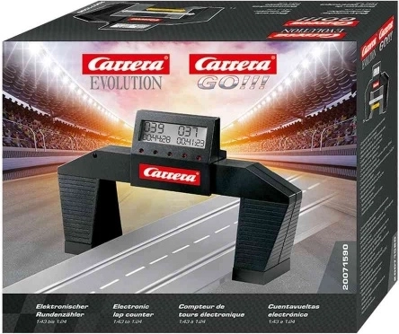 Upgrade je CARRERA-racebaan met de elektronische rondenteller voor de series GO en EVOLUTION. Het apparaat registreert elke doorkomst betrouwbaar dankzij de lichtsluis, laat je een race instellen op exact aantal ronden of een specifieke tijd en levert gedetailleerde tijden met een nauwkeurigheid van 1/100 seconde.