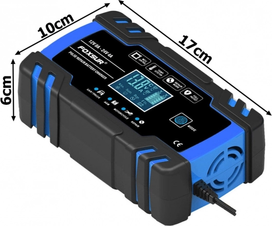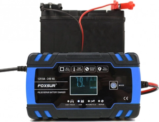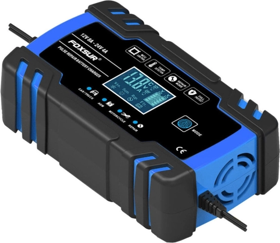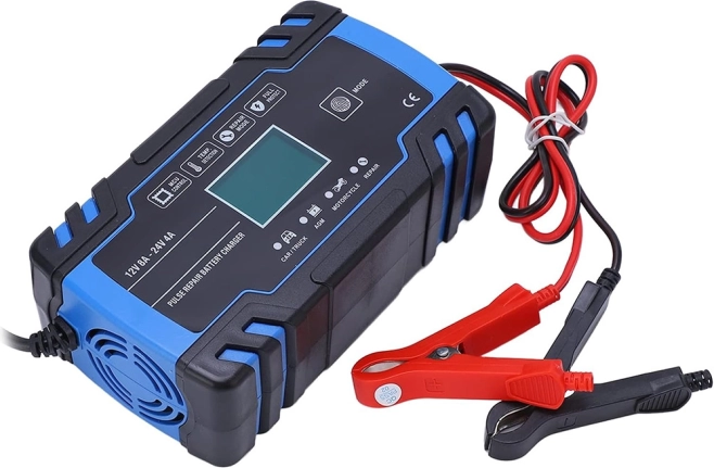 Compacte en intelligente lader voor 12V/24V voertuigaccu’s met digitaal display en reparatiemodus. Biedt snel en veilig opladen, heeft een winter- en zomermodus, automatische beveiliging en pulsherstel om verzwakte accu’s nieuw leven in te blazen. Ideaal voor auto’s, motorfietsen en andere voertuigaccu’s.