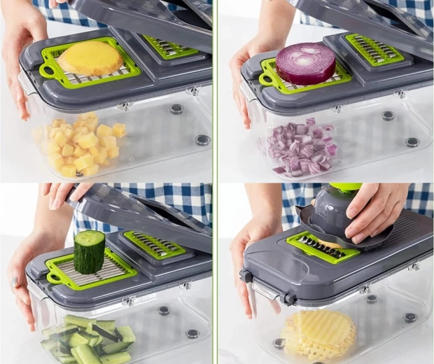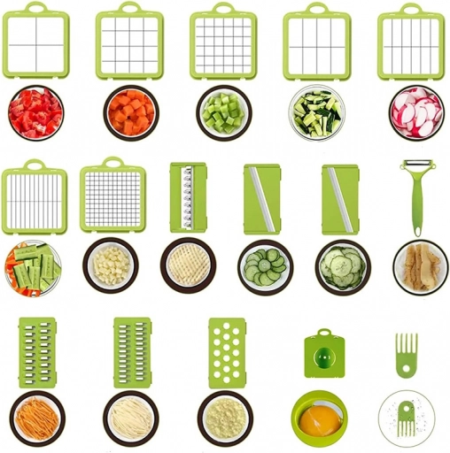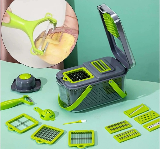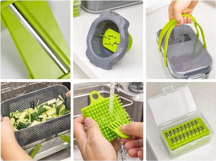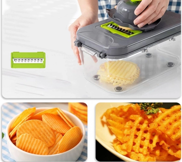 Maak van maaltijdvoorbereiding een fluitje van een cent met deze multifunctionele snijder en rasp. Hij biedt tot 13 verwisselbare messen voor snijden, blokjes, julienne en raspen, een ruime opvangb... Meer tonen