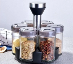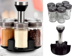 Praktische draaibare kruidenorganizer met 6 glazen kruidenpotjes houdt je keuken overzichtelijk en zorgt dat kruiden altijd binnen handbereik zijn. De 360° draaistandaard biedt snelle toegang, de glazen potjes behouden het aroma en de deksels met doseerder maken precies kruiden eenvoudig.