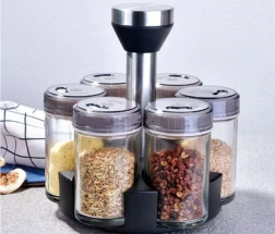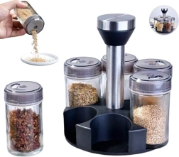 - Overzichtelijke organisatie – 6 potjes voor verschillende kruiden, zout of peper.