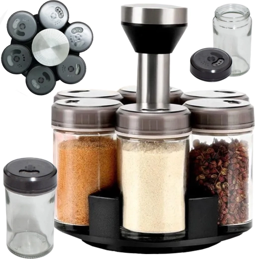 Dankzij het 360° draaimechanisme vind je het gewenste kruid met één beweging. Vergrendelbare deksels met doseerder maken zowel strooien als fijne dosering mogelijk zonder morsen, zodat je kruiden precies en schoon gebruikt.