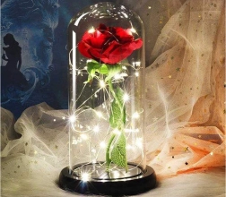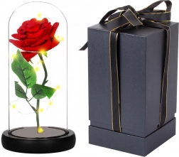 Deze stijlvolle decoratie, geïnspireerd op het sprookje “Belle en het Beest”, verrijkt elk interieur. De fijne lichtjes rond de rozenstengel verlichten de woonkamer, slaapkamer of feestelijk gedekte tafel en geven de ruimte een warme, magische gloed. Dankzij de elegante verpakking is het cadeau klaar om direct te overhandigen.