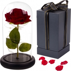 De glazen stolp beschermt de roos tegen stof en beschadiging, zodat zij langdurig haar intensieve kleur en vorm behoudt. Voeding via AAA-batterijen zorgt voor comfortabel gebruik zonder kabels – ideaal voor romantische diners, bijzondere momenten en voor het dagelijks knus maken van je huis.