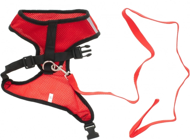 Comfortabel en licht tuigje voor honden en katten met lijn, met een niet-trekkende constructie, ademende mesh en reflecterende elementen voor veilige wandelingen overdag en ’s nachts. Dankzij de snelsluitgesp en verstelbare bandjes doe je het tuigje eenvoudig om en pas je het perfect aan het lichaam van je huisdier aan.