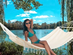 Houten spreidstokken houden de hangmat mooi open, stevige touwen zorgen voor stabiliteit en bevestigingskoorden voor snel ophangen zijn inbegrepen.