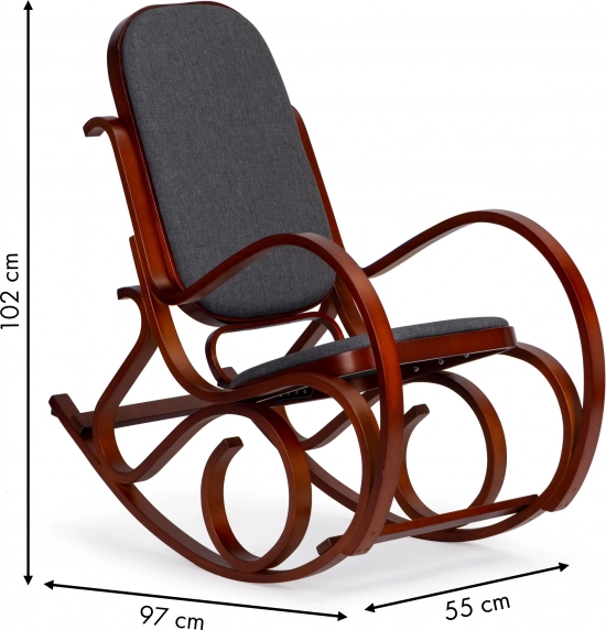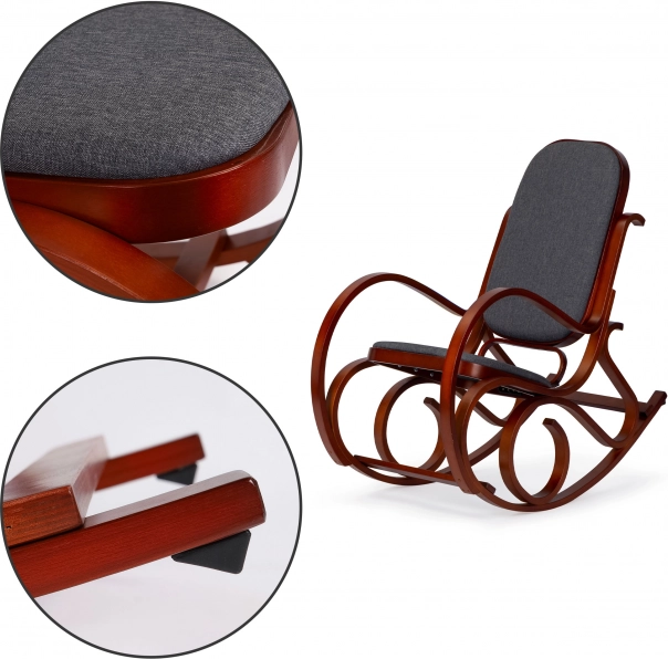 De doordachte constructie is ontworpen voor stabiel en vloeiend schommelen. Speciale eind-“voeten” op de sledes voorkomen te ver achterover kantelen, zodat je veilig kunt ontspannen. De slijtvaste stof is prettig aan te raken en eenvoudig te onderhouden, zodat de stoel je lang plezier bezorgt.