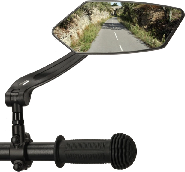 Dankzij het langwerpige ontwerp biedt de spiegel een uitgebreid zicht naar achteren, wat de veiligheid tijdens het fietsen aanzienlijk verhoogt.