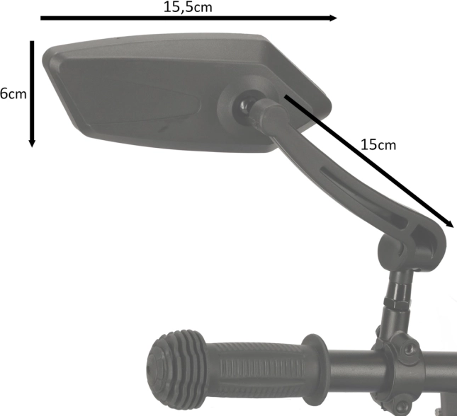 De spiegels hebben een armlengte van 15 cm, wat een brede kijk geeft, en de afmetingen zijn 15,5 cm x 6 cm. De hoogwaardige kunststof afwerking zorgt voor een lange levensduur.