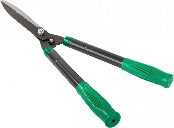 Telescopische tuinschaar van hoogwaardig staal zorgt voor een schone en rechte snede bij het onderhoud van hagen, sierstruiken en jonge takken. Dankzij de verlengbare handgrepen bereikt u eenvoudig hogere delen zonder ladder en behoudt u maximale controle en precisie.