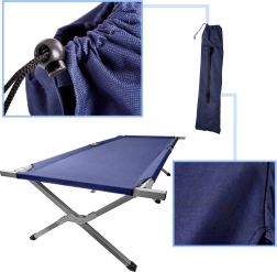 Geniet van een rustgevende slaap in de natuur. De robuuste stalen constructie biedt stabiliteit, het brede bed van sterk polyester 600D zorgt voor comfort, ook bij langer uitrusten. Het bed klapt zonder gereedschap in enkele seconden uit en dankzij de tas met schouderband neem je het gemakkelijk mee in auto, caravan of op de boot.