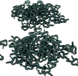 De combinatie van PP-kunststof en verzinkte draad is licht, sterk en bestand tegen regen, vocht en UV-straling. Afgeronde randen en veerkrachtige druk zijn zacht voor het weefsel, zodat planten vrij ademen en verder groeien zonder beschadiging. De clips zijn onopvallend groen en kunnen herhaaldelijk worden gebruikt.