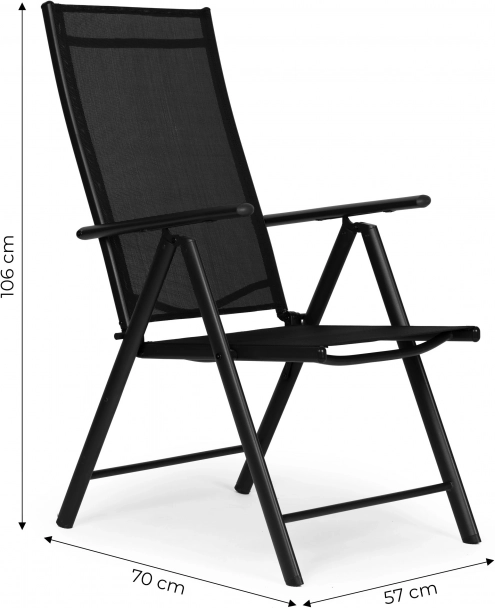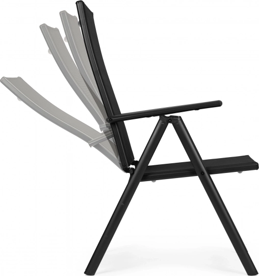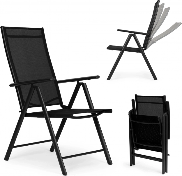 Opvouwbare stoelen met zeven standen rugleuning bieden u comfortabele rust in de tuin, op het balkon of terras. Het stalen frame garandeert stabiliteit en langdurig gebruik, en dankzij het gebruik van hoogwaardige materialen is er geen onderhoud nodig.