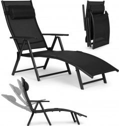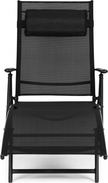 De stijlvolle zwarte MULTIGARDEN ligstoel is ontworpen voor ontspannen comfort in de tuin, op het terras en bij het zwembad. De ademende textielnetstof past zich aan het lichaam aan en zorgt voor uitstekende ventilatie, terwijl het robuuste stalen frame met poedercoating stabiliteit en een lange levensduur biedt. Inclusief een zacht afneembaar hoofdkussen voor nog aangenamer ontspanning.