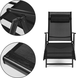 Opvouwbare tuin- en strandligstoel met verstelbare rugleuning, stalen frame, zwart MULTIGARDEN