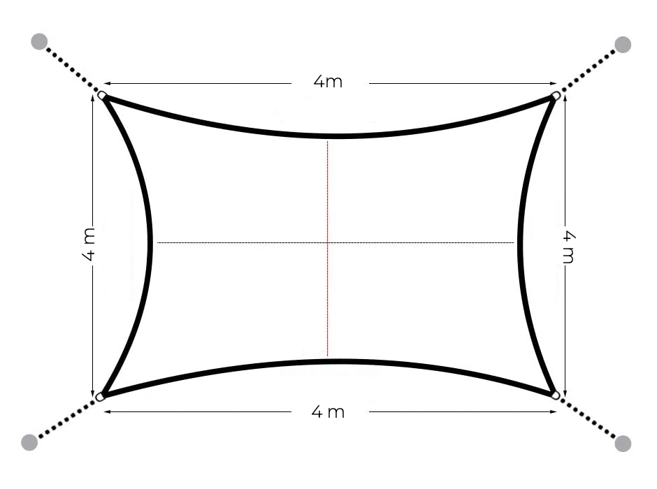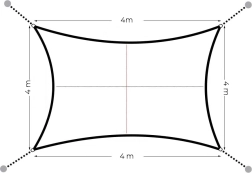 Het zeil kan gecombineerd worden met andere om grotere oppervlakken te bedekken, bijvoorbeeld een volledig terras. Voor een goede waterafvoer raden we een helling van ca. 20° en een zorgvuldig diagonale opspanning aan, zodat er geen waterzakken ontstaan.