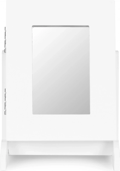 Elegante sieradendoos met spiegel van ModernHome biedt een compacte en stijlvolle oplossing voor het opbergen van sieraden. De binnenkant heeft een zwart pluche afwerking, veel haakjes, een vak en ruimte voor kettingen, ringen, armbanden en oorbellen. Stabiele constructie en een praktische spiegel op de deurtjes maken het kiezen van accessoires en make-up aanbrengen eenvoudig.