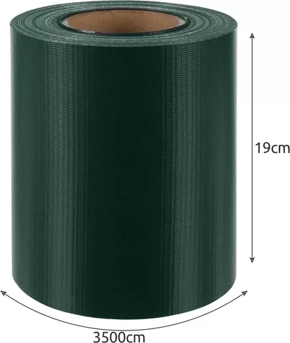 Praktische en elegante PVC-hekbandscherm met een hoogte van 19 cm en een lengte van 35 m, ideaal voor het afdekken van panelenhekken, balkon- en terrasleuningen en schermen bij overkappingen. Het materiaal met een hoog grammage van 450 g/m² is UV-bestendig, weerbestendig, bestand tegen vocht en lage temperaturen, waardoor de kleur niet vervaagt en de band niet barst.