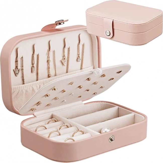 - Ruime en verstelbare compartimenten – aanpasbare compartimenten voor verschillende soorten sieraden, maar ook voor kleine cosmetische accessoires.