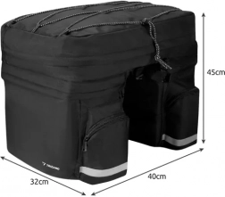 Deze tas is uitgerust met drie hoofdvakken met een totale capaciteit van 60 liter, voldoende voor het vervoeren van niet alleen snacks en kleding, maar ook waardevolle spullen zoals een laptop of documenten in A4-formaat. Perfect voor ritten in de stad en langere fietstochten.