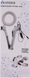 De elegante en compacte IZOXIS-lamp combineert krachtige ringvormige LED-verlichting met een glazen loep voor maximale precisie. Dankzij 3 kleurtemperatuurmodi en 10 helderheidsniveaus pas je het licht eenvoudig aan elke taak aan – van detailmake-up tot solderen of borduren.