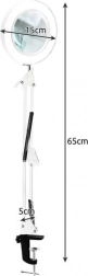 De stevige metalen constructie met verstelbare scharnieren en veren blijft stabiel op zijn plaats, terwijl de klem (clamp) de lamp veilig aan het tafelblad bevestigt tot een dikte van 5 cm. De glazen lens is krasbestendig en levert een helder, scherp beeld.