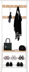 In totaal 9 haken in twee rijen maken het mogelijk verschillende soorten kleding en accessoires op te hangen. Daarnaast is er een stang voor het ophangen van sjaals. Onder het rek bevinden zich twee ruime schoenplanken die je schoenen geordend houden. Tegelijkertijd biedt het zitje comfort bij het aantrekken van schoenen.