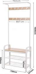 Functioneel en stijlvol kledingrek met planken voor schoenen en een zitje – de ideale oplossing om je hal of kantoor te organiseren. Voorzien van 9 haken voor jassen, hoeden en andere accessoires.