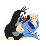 Schattige De Mol met een blauwe gieter, ideaal als onderdeel van kinderdecoratie.