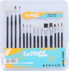 Ontdek de veelzijdigheid van de pinselset 15 stuks voor je artistieke projecten, met verschillende maten voor zowel platte als ronde streken.