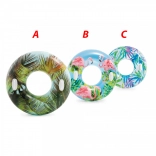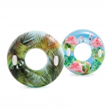 Het duurzame materiaal met een dikte van 0,25 mm weerstaat dagelijks gebruik bij het zwembad en aan zee. Dankzij de tropische motieven met palmen of flamingo’s trekt de ring de aandacht en geeft hij je zomerse uitrusting een frisse stijl.