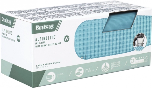 De opblaasbare slaapmat Bestway Alpinelite biedt comfortabel slapen onder de sterren of direct op de camping. Met het AirCinch-systeem heb je geen pomp nodig, want de set bevat een speciale zak waarmee je de mat eenvoudig opblaast door met je handpalmen te drukken. Wanneer de mat goed is opgeblazen, sluit je simpelweg het ventiel en kun je ontspannen. Opgevouwen is de mat compact en past hij gemakkelijk in een rugzak.