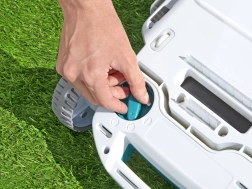 Het apparaat wordt bediend met één aan/uit-schakelaar en bevat ingebouwde sensoren die de AquaTronix activeren om te beginnen met reinigen wanneer het ondergedompeld is in water en om de stroom uit te schakelen wanneer het uit het water wordt gehaald, wat de motor beschermt en de levensduur verlengt. De grote ingebouwde kamer kan tot 3,5 l vuil bevatten. Na volledige oplading werkt de AquaTronix ongeveer 90 minuten, wat voldoende tijd biedt om een kristalhelder zwembad te bereiken. Deze draadloze robot heeft volledige bewegingsvrijheid dankzij de gepatenteerde richtingstroom die hem in staat stelt van richting te veranderen bij botsing met muren of obstakels. Bovendien vereenvoudigen snelklemmen het onderhoud en de reiniging - open eenvoudig de kamer en verwijder het vuil.