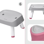 - 6 functies in 1: hoge stoel met blad, opzet voor eetstoel, lage stoel met blad, stoel + tafeltje, tafel met bouwsteen-plaat, laag krukje