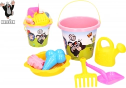 Prikkel de fantasie van kinderen met deze grote roze zandspeelset met het KRETČEK-motief. Bevat een emmer van 3,5 l, zeef, schep, hark, 2 vormpjes en een gieter – alles wat kinderen nodig hebben om kastelen te bouwen en zandtaartjes te maken. Geschikt vanaf 3 jaar.
