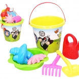 Geniet van onbezorgd spelen in de zandbak met een set met het motief van Molletje. Deze grote gele zandset bevat alles wat je nodig hebt: een emmer van 3,5 l, een zeef, 2 vormpjes, een schepje, een harkje en een gietertje – ideaal voor creatief bouwen en buitenspeelplezier.