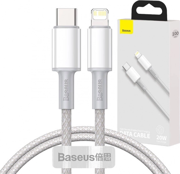 Baseus gevlochten kabel USB‑C naar Lightning 20W PD, 1 m, wit