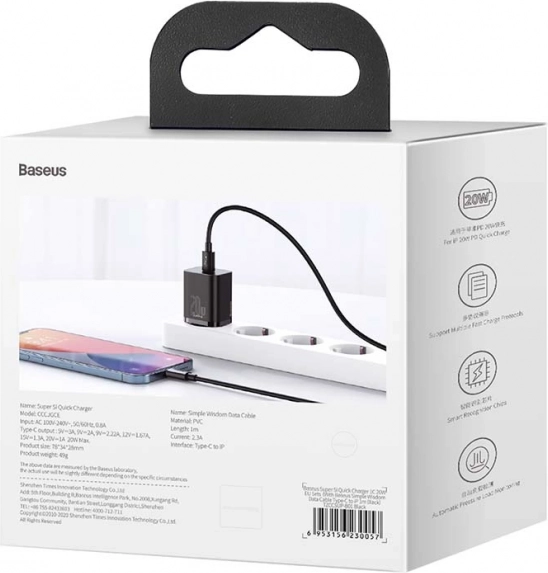 Baseus Super Si snellader 1C 20W met USB‑C naar Lightning-kabel 1 m zwart