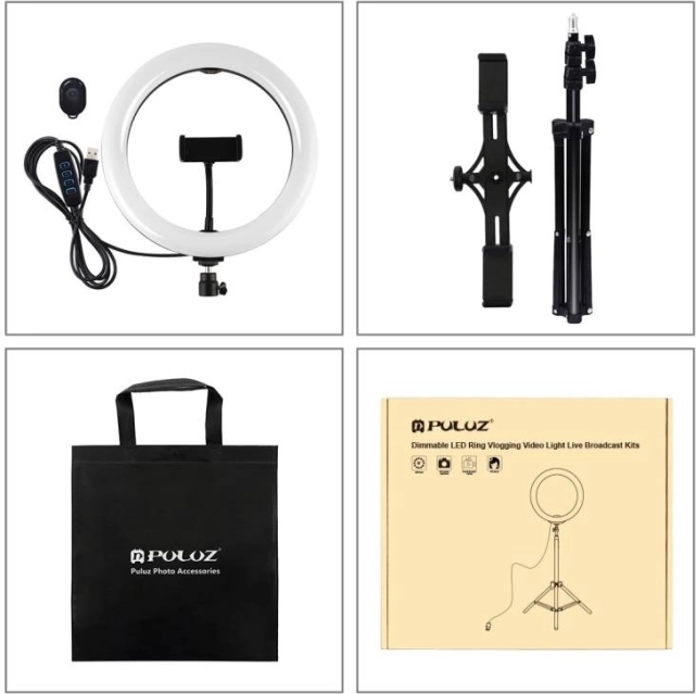 De Puluz LED-ringlamp van 26 cm is een veelzijdige set voor hoogwaardige belichting van gezicht en producten. Dankzij de hoge kleurweergave-index CRI >95 oogt de huid natuurlijk en zijn kleuren levensecht. Drie kleurtemperaturen 3200–5600 K en vloeiend dimmen 1–100% laten je de sfeer van de opname snel aanpassen zonder filters. Het zachte, gelijkmatige licht is ook bij langdurig gebruik prettig voor de ogen.