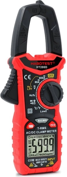 De HABOTEST HT206D is een veelzijdige tangmultimeter die is ontworpen voor snelle en veilige diagnose van elektrische installaties. Ondersteunt AC/DC‑spanning tot 600 V, AC/DC‑stroom tot 600 A, meting van weerstand, capaciteit, frequentie, duty‑cycle, temperatuur en biedt praktische functies zoals MAX/MIN, Data Hold en automatisch uitschakelen. De contactloze spanningsdetectie NCV met geluids- en lichtsignalen verhoogt de veiligheid.