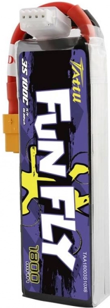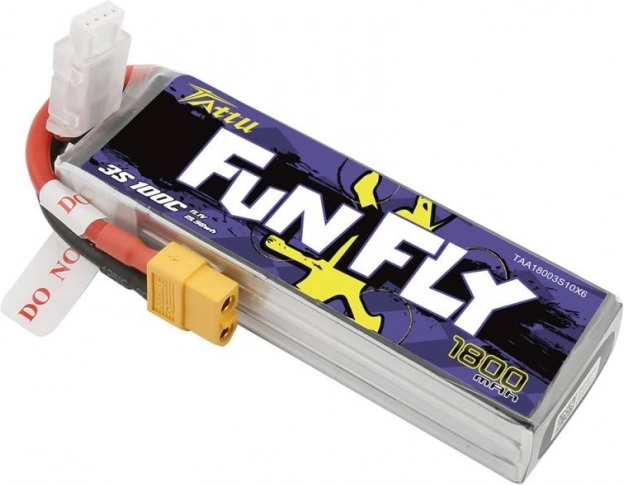 De Tattu Fun Fly 1800 mAh 3S is een populaire LiPo‑accu voor race en freestyle FPV. Biedt een hoge continue ontlaadstroom van 100C (tot 200C piek) voor directe motorrespons en stabiele spanning gedurende de hele vlucht. De robuuste constructie en precieze cellen zorgen voor betrouwbaarheid en consistente prestaties.