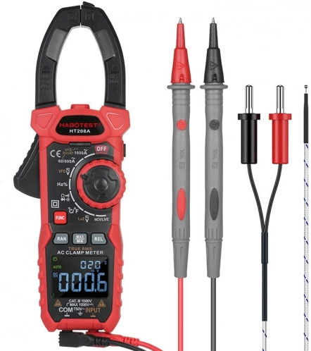 De multifunctionele digitale stroomtangmultimeter HABOTEST HT208D biedt nauwkeurige metingen en een overzichtelijk LCD‑display met dubbele achtergrondverlichting. Hij meet AC/DC‑spanning en ‑stroom, weerstand, capaciteit, frequentie, temperatuur en NCV contactloze spanningsdetectie. Dankzij TRUE RMS, automatische uitschakeling, MAX/MIN en een zaklamp is hij ideaal voor zowel thuis- als professioneel gebruik.