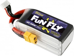 De Tattu Fun Fly 1550 mAh 4S is een populaire keuze voor FPV‑races en freestyle. Dankzij 100C levert hij krachtige performance en snelle stroomafgifte zonder noemenswaardige spanningsval, wat resulteert in snelle motorrespons en langere, consistente vluchten.